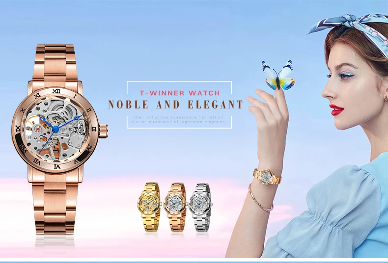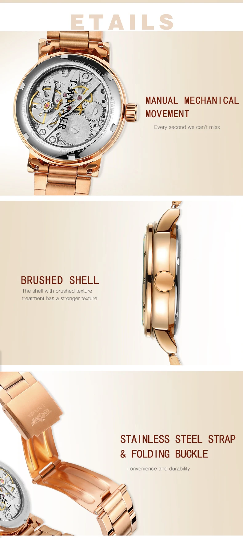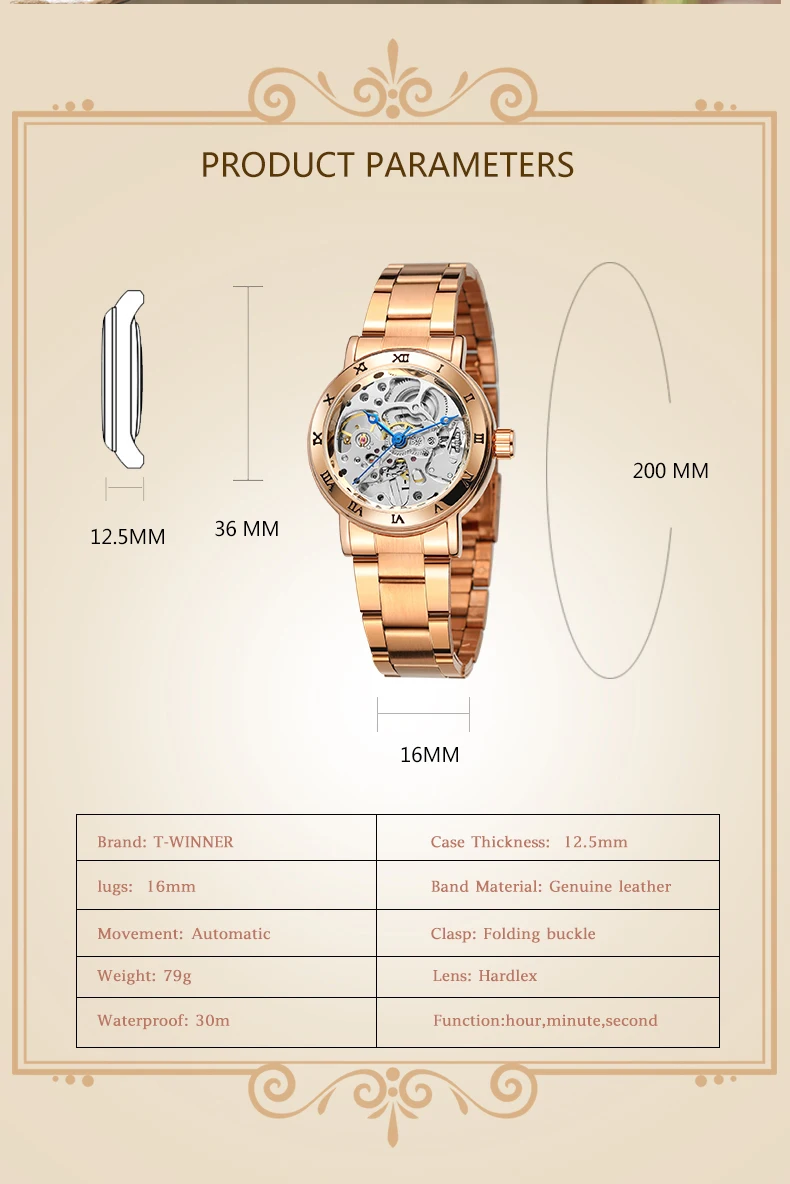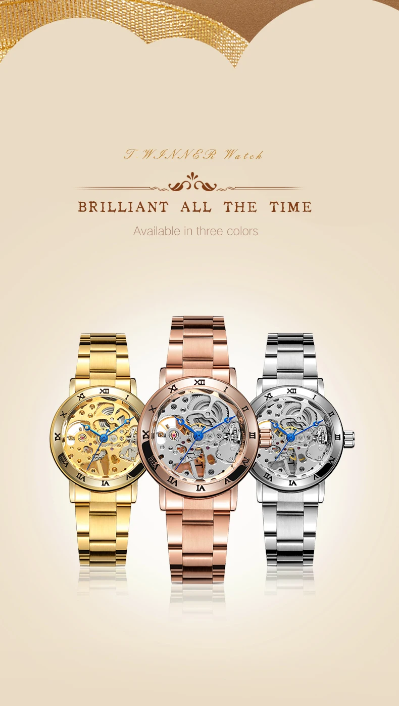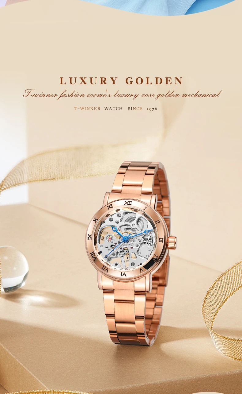 2025 WINNER Original High-end luxury Woman Watch Stainless Steel Skeleton Mechanical Fashion Elegant Rose Gold Women’s Watches