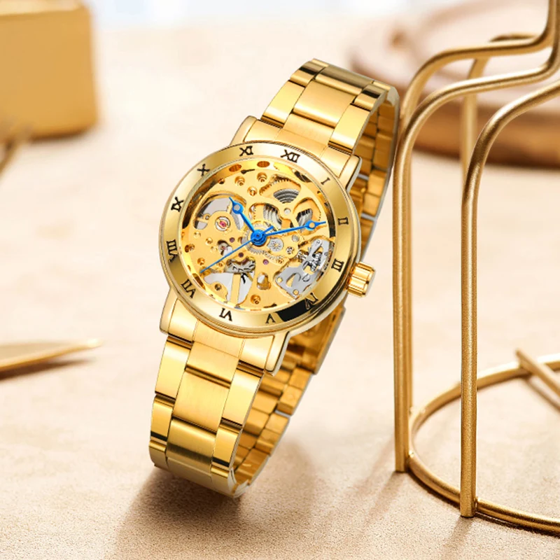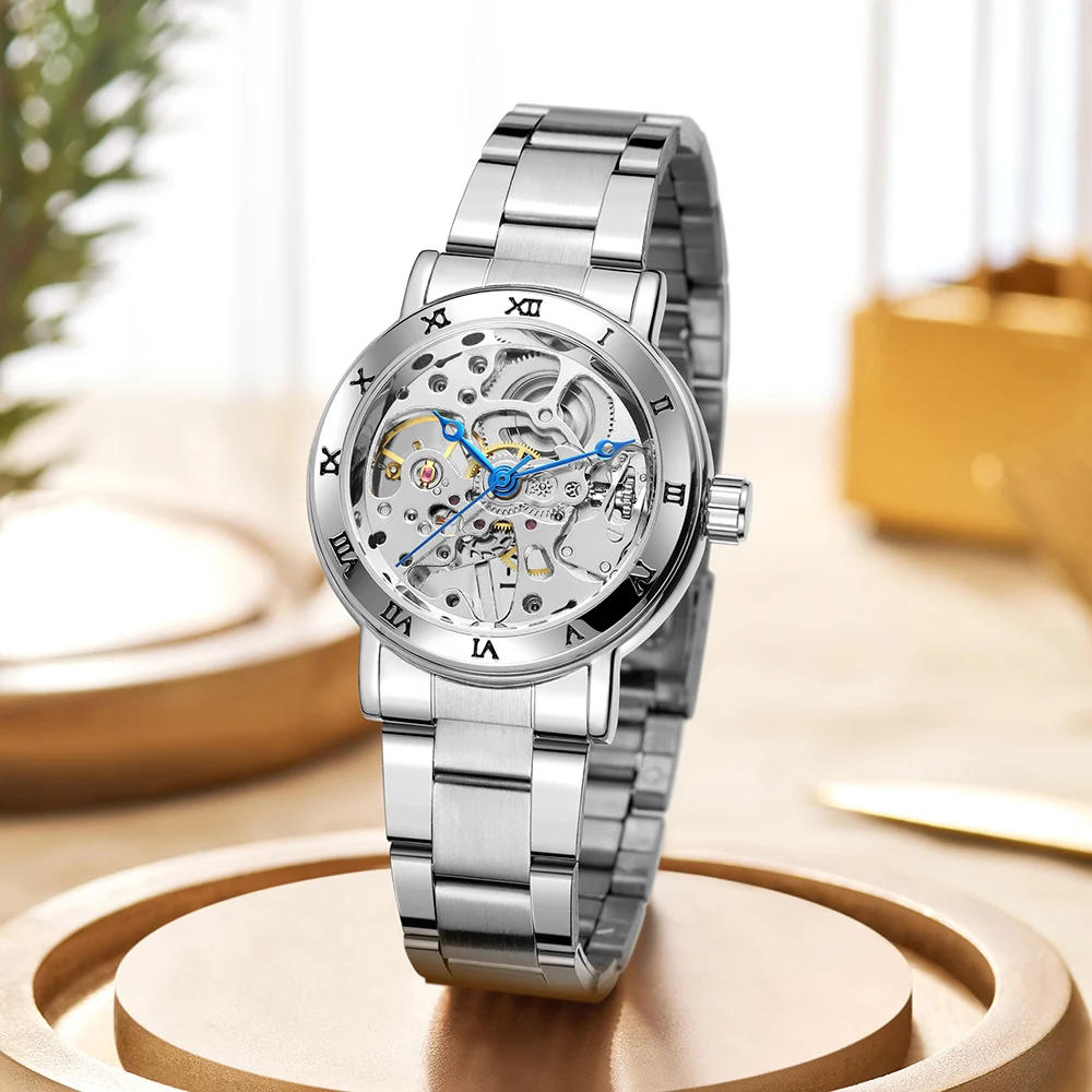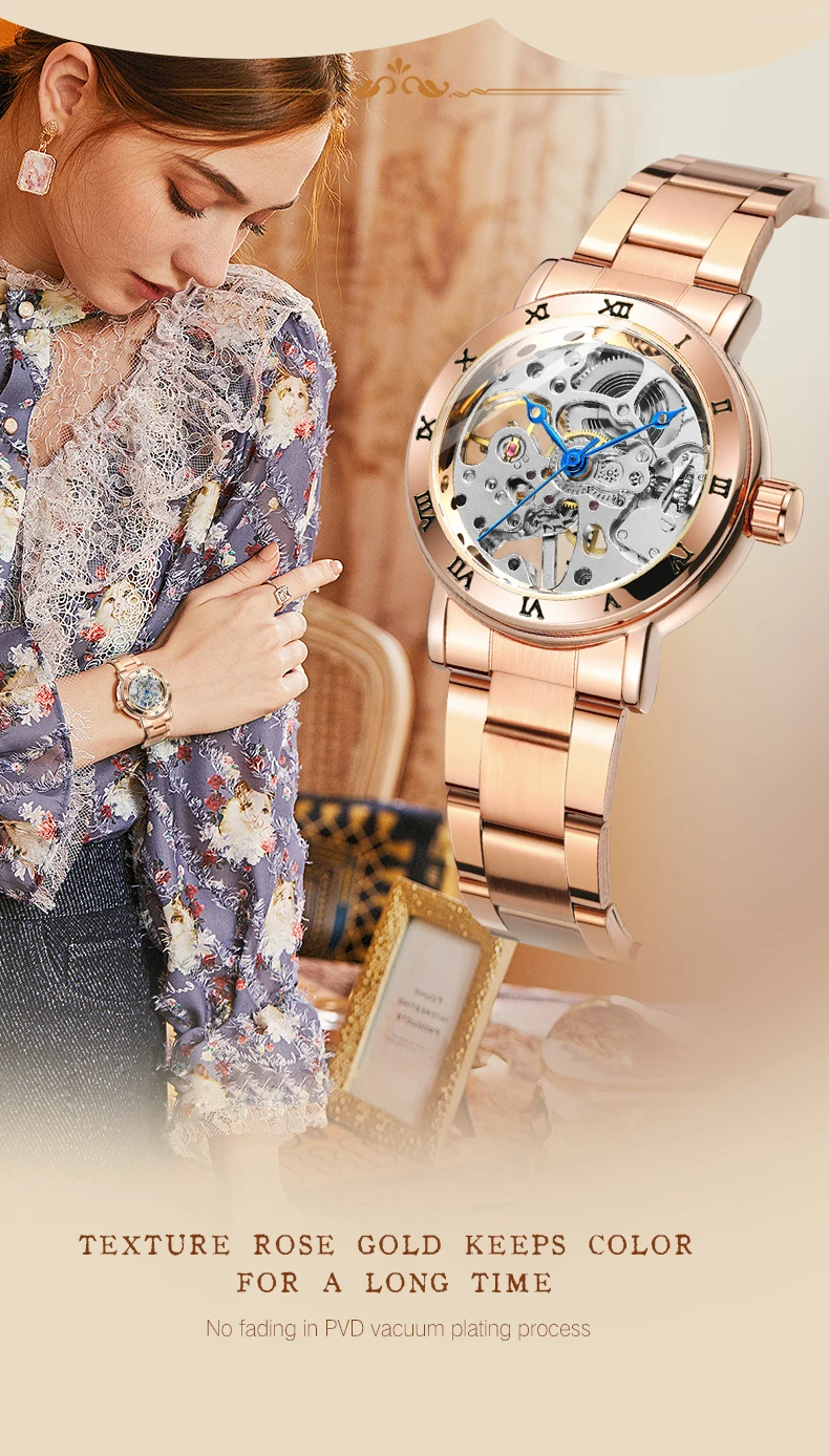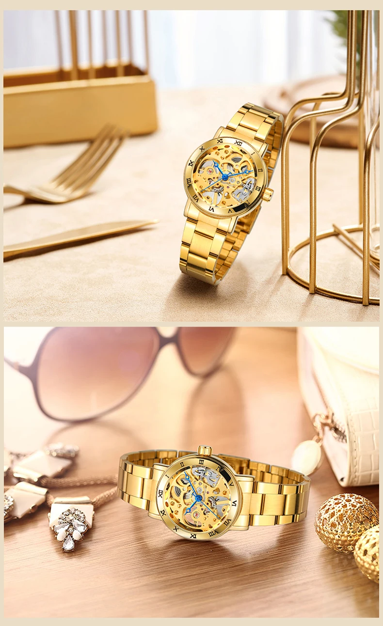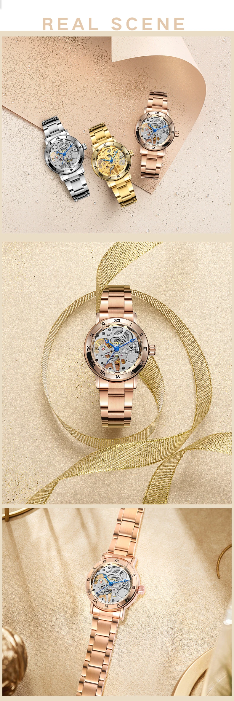 2025 WINNER Original High-end luxury Woman Watch Stainless Steel Skeleton Mechanical Fashion Elegant Rose Gold Women's Watches