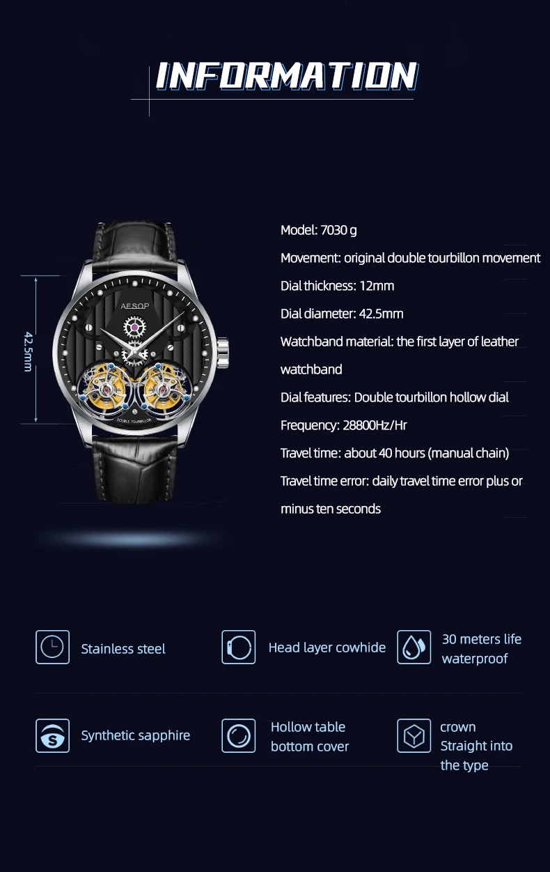 | Feature | tourbillon, Skeleton, Shock Resistant, water proof, tourbillon, Skeleton, Shock Resistant, Luminous, Water Resistant, None |