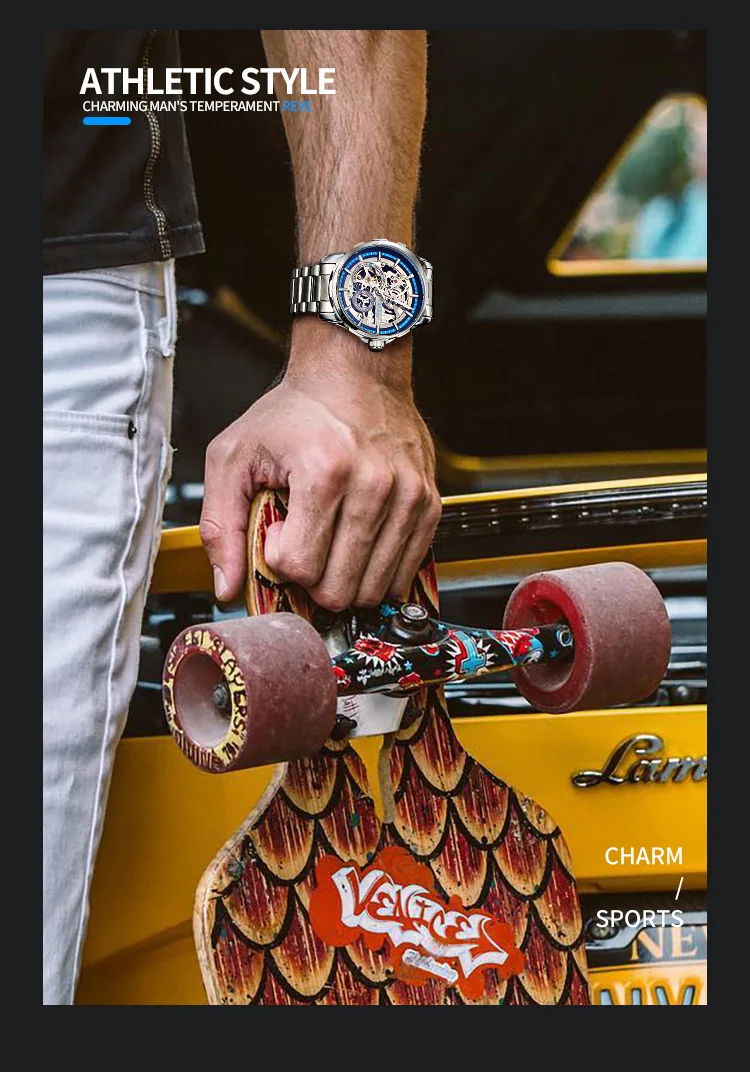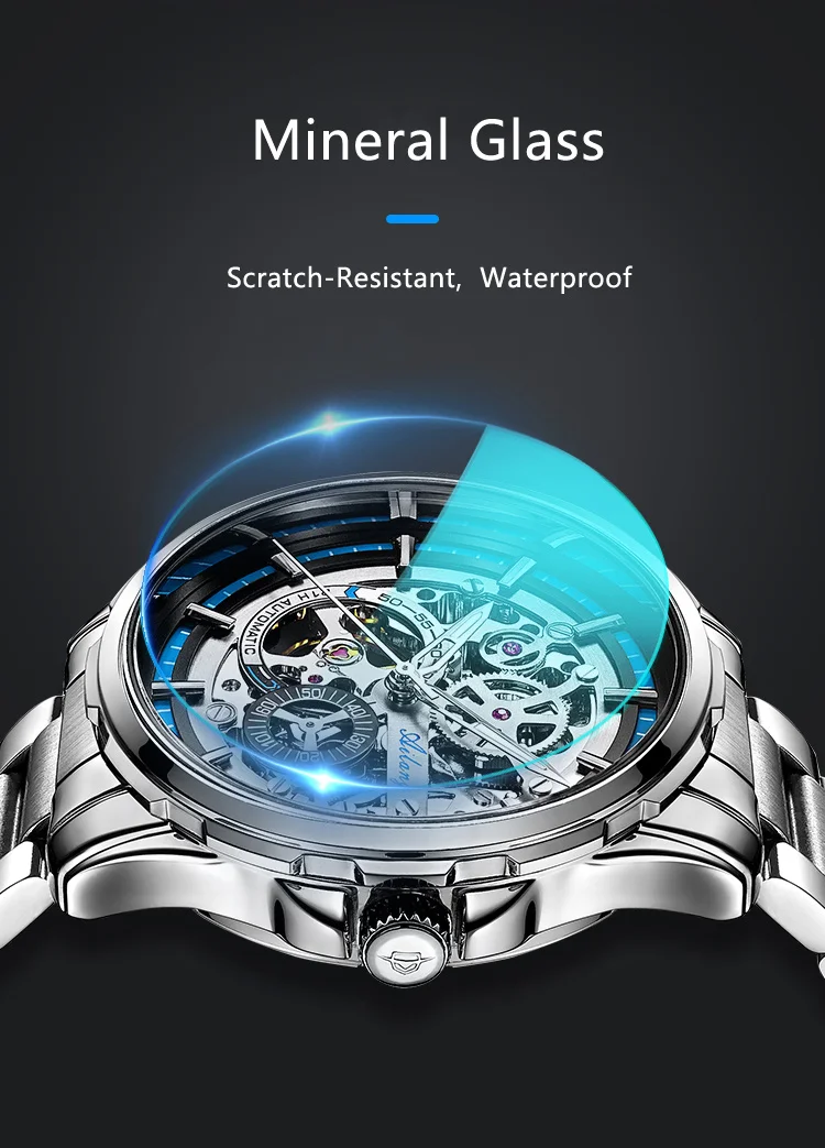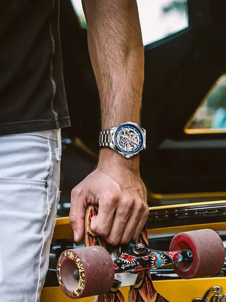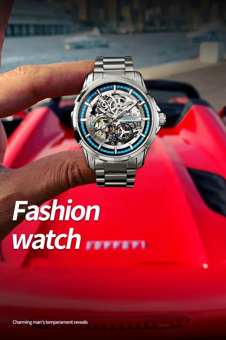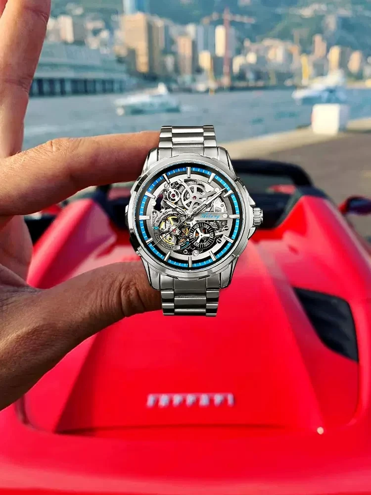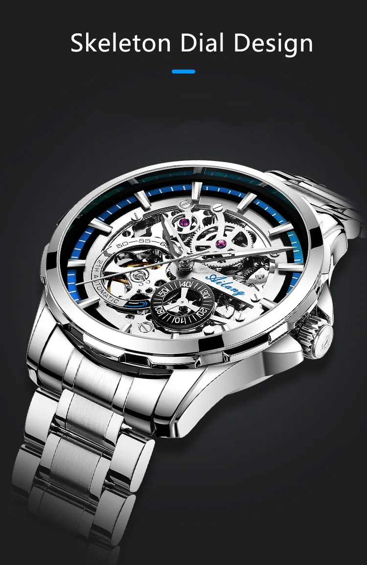 AILANG New Skeleton Watches Stainless Steel Mechanical Automatic Watch Men Sport Clock Casual Business Wristwatch Relojes Hombre