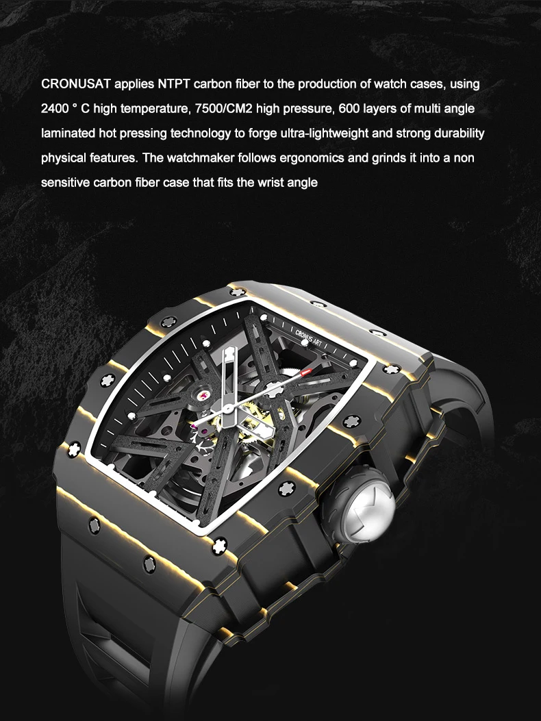 Be the first to review “CRONUSART Men Automatic Watch Tonneau Carbon Fibre Case Mechanical Wristwatch Luminous Fluororubber Strap Skeleton Dial”