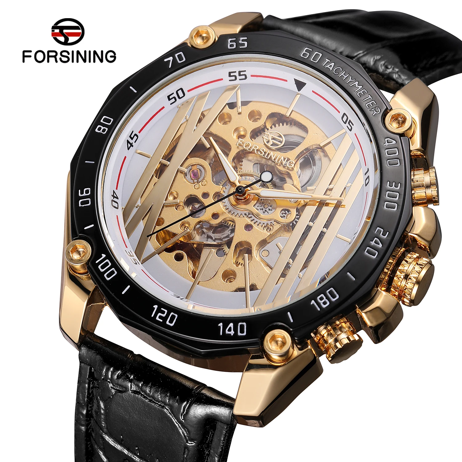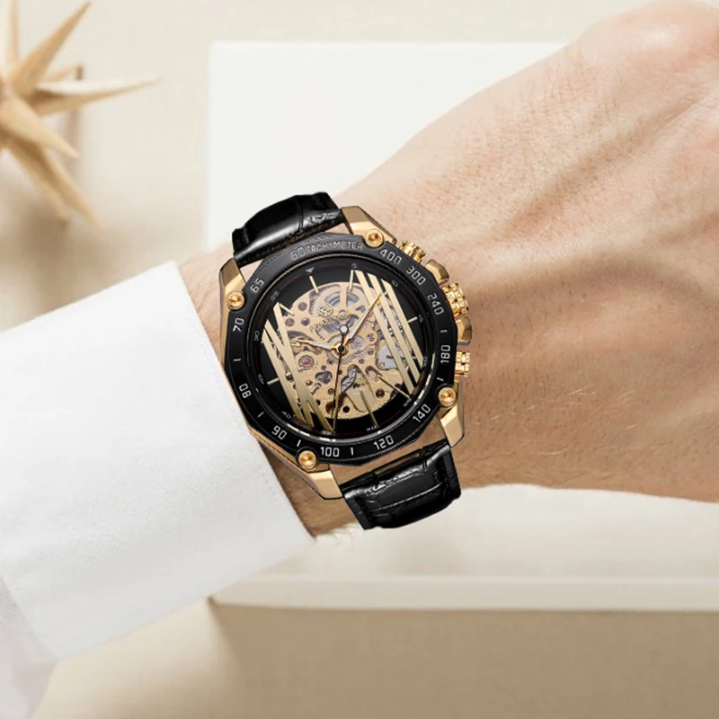 dial: white color,with gold bars and big roman numbers,skeleton.