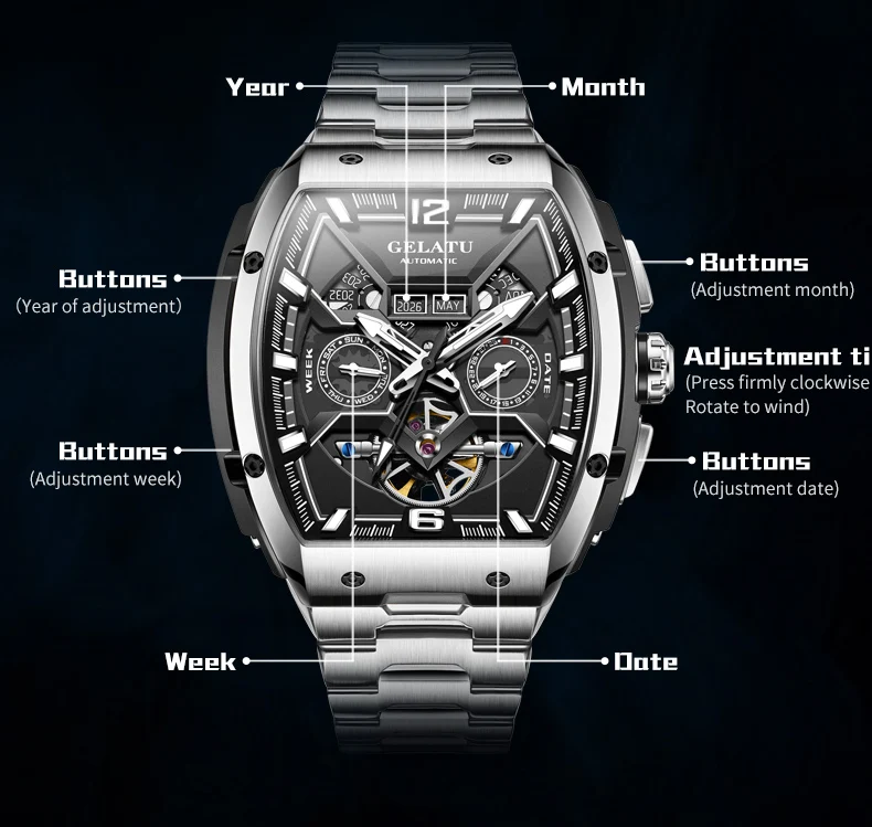 Feature | Skeleton, Luminous, Shock Resistant, Rattrapante, Chronograph, Complete Calendar, DIVER, Multiple Time Zone, Week Display, water proof |