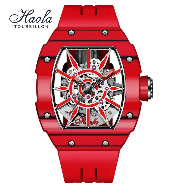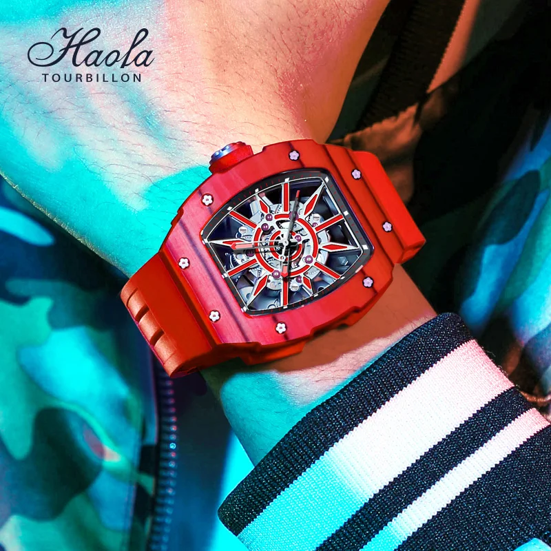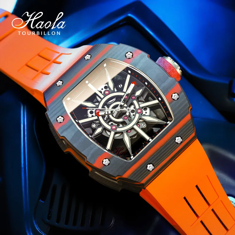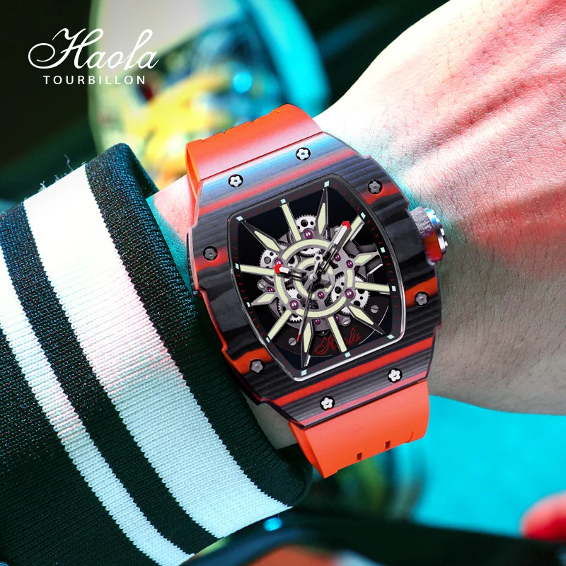 Haofa Automatic Skeleton Mechanical Watch For Men Super Luminous Sapphire Self-wind Movement Mens Watch Carbon Fiber Bezel 1905