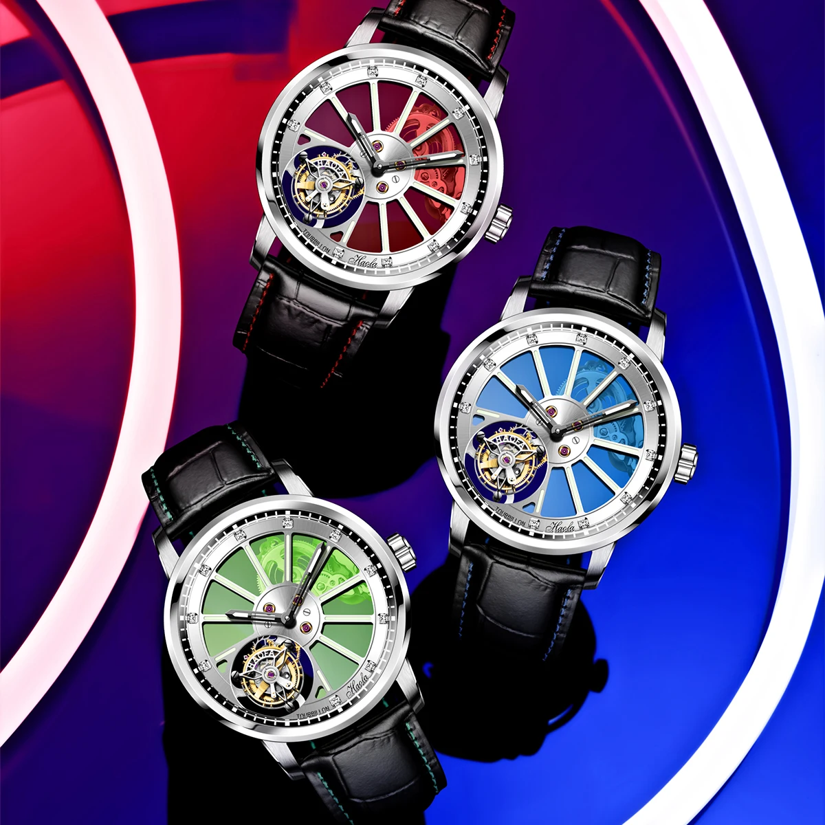 Haofa Double Skeleton Tourbillon Mechanical Watches for Men Manual Movement Color Sapphire Men Watch Luxury Casual Fashion 1925A