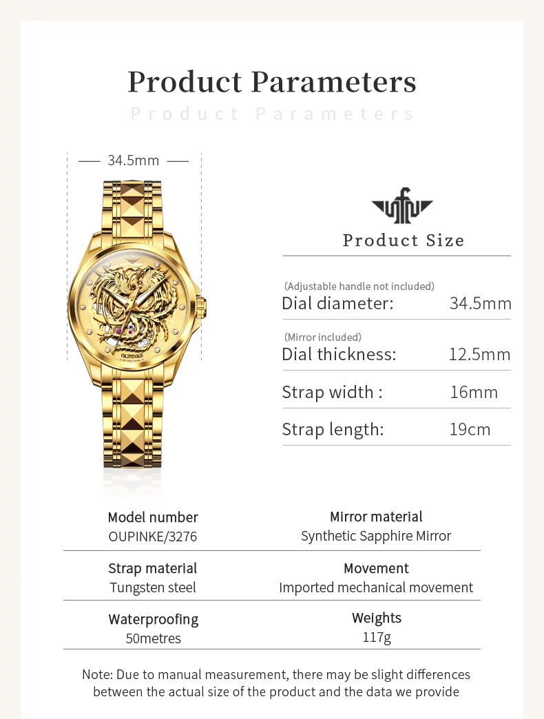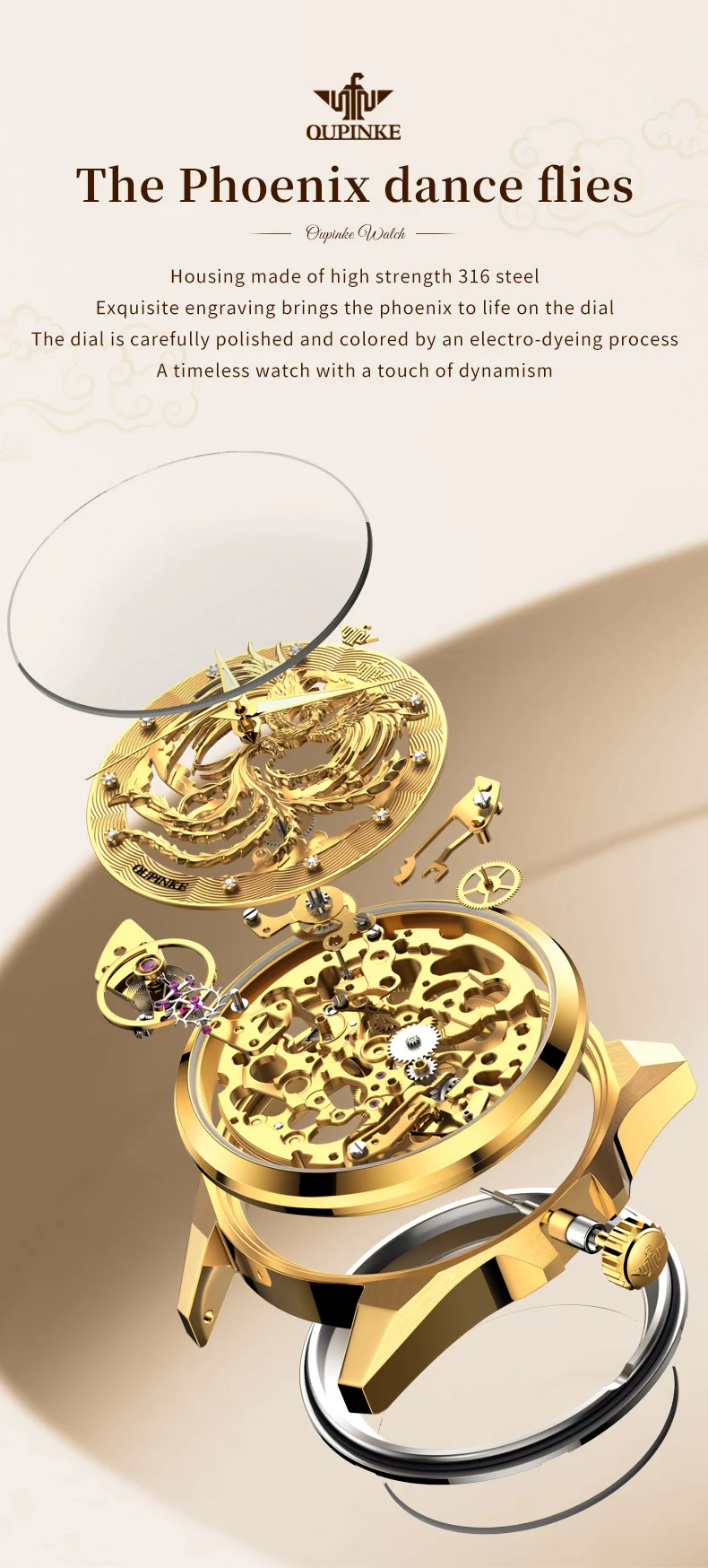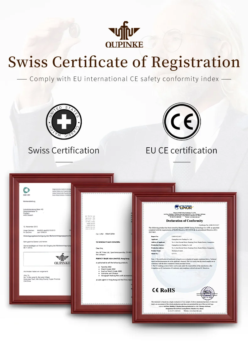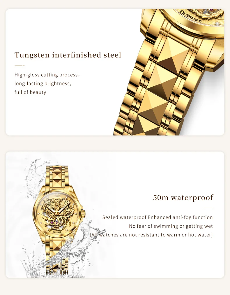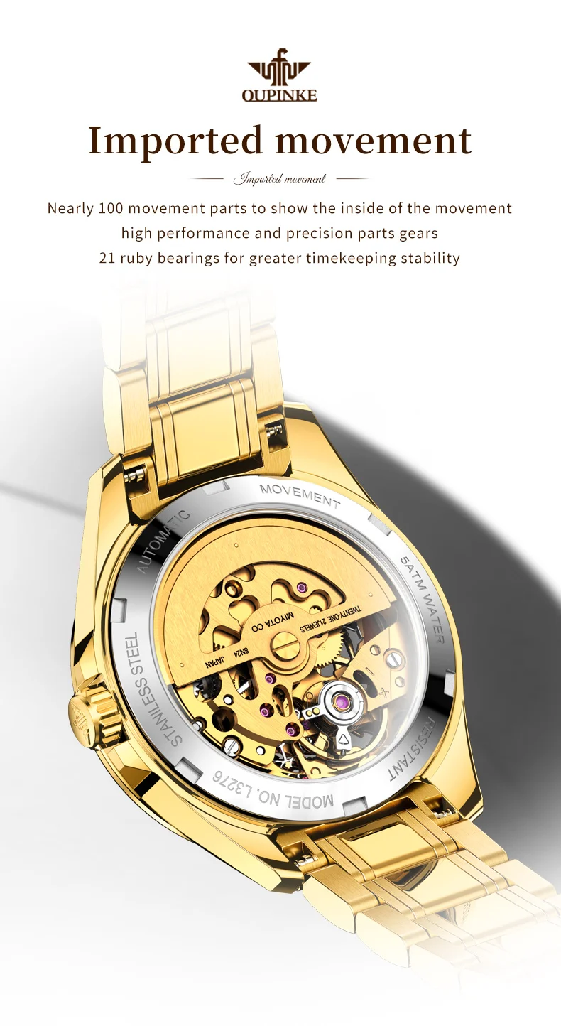 OUPINKE automatic watch: original mechanical gold hollow core, longer kinetic energy storage, internal high-performance precision gears and 21 ruby bearings, ensuring more accurate driving time.